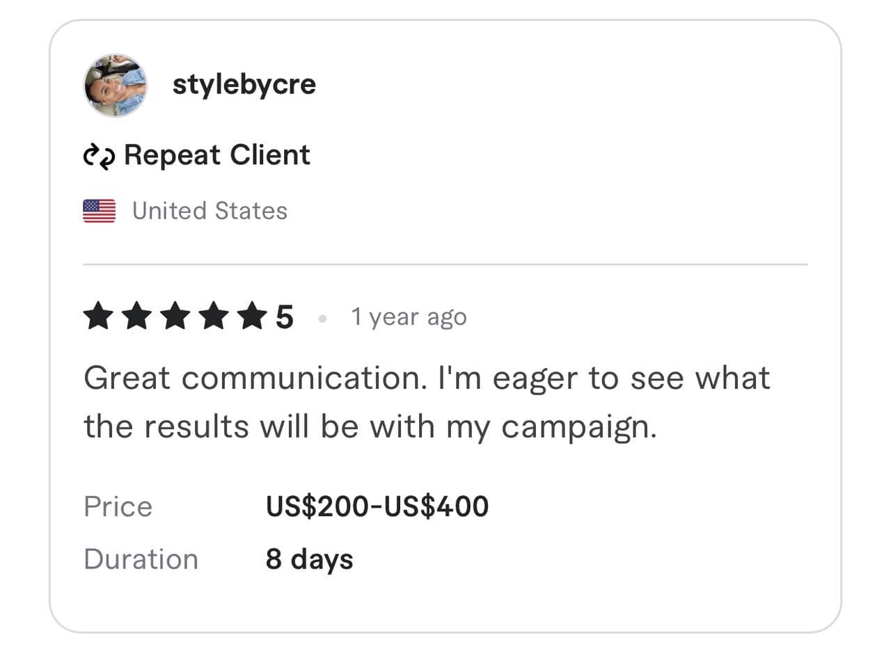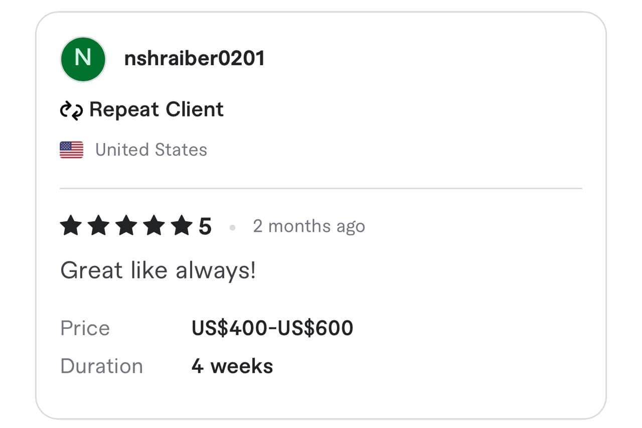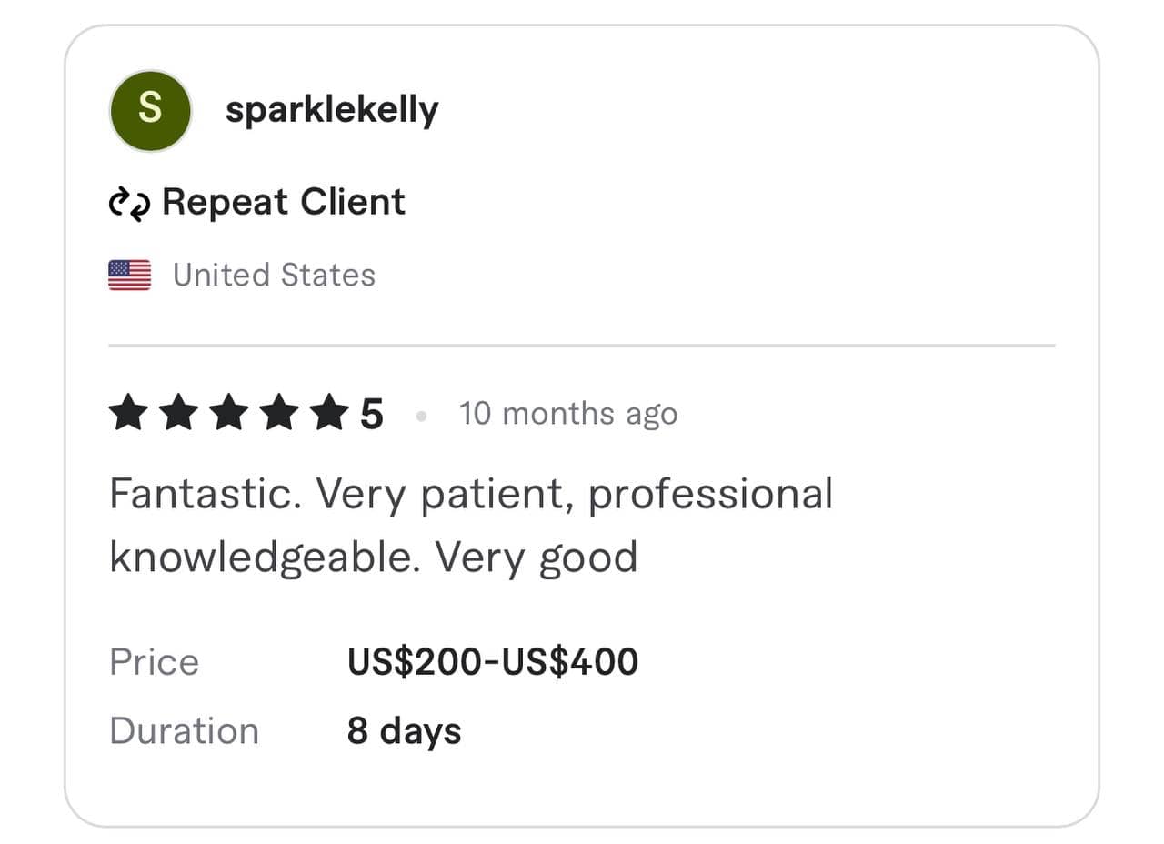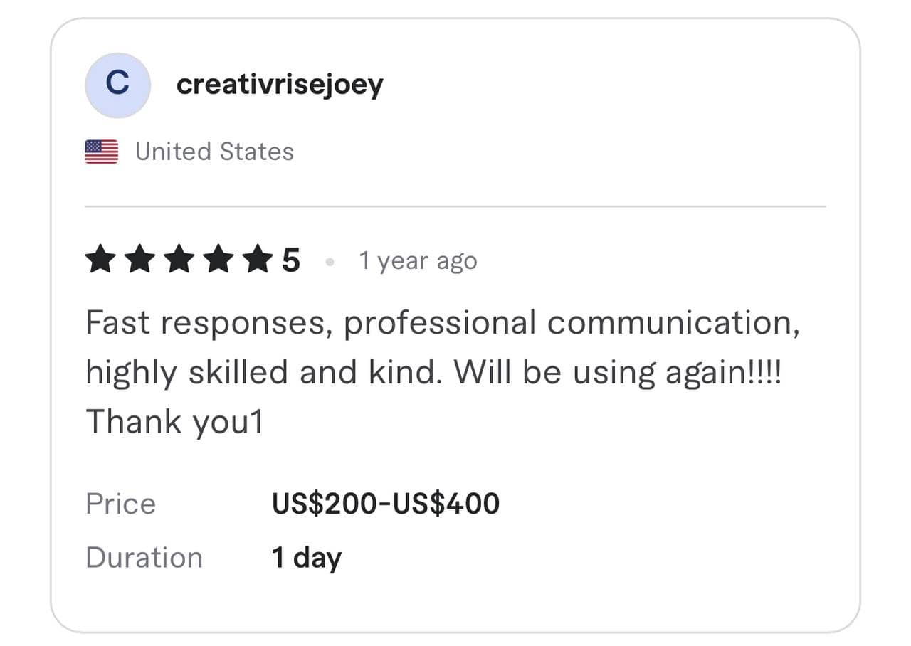 We have been awarded the highest TOP RATE and Vetted PRO status by the Fiverr team