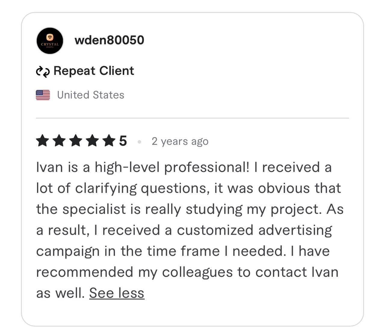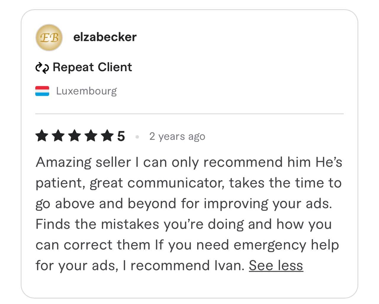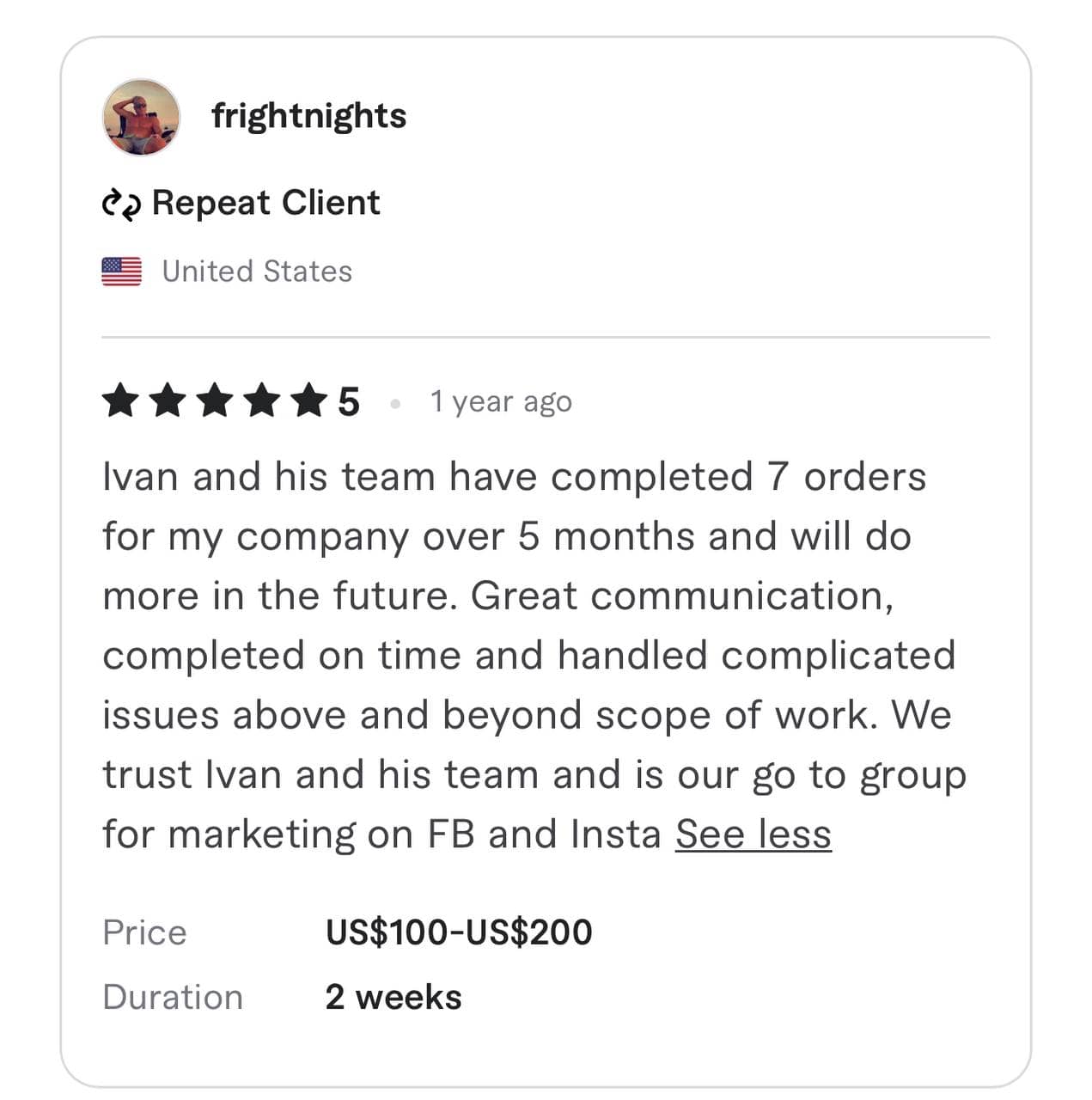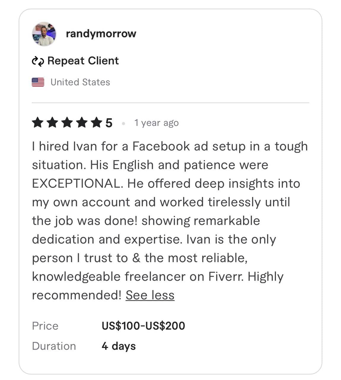 We have been awarded the highest TOP RATE and Vetted PRO status by the Fiverr team